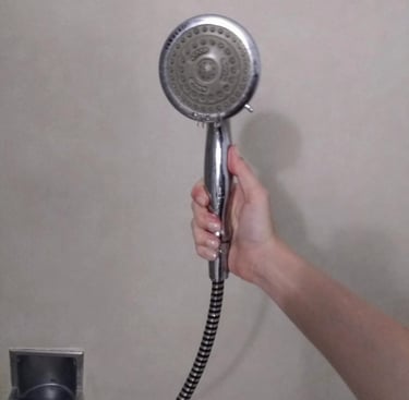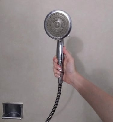 Hand held showers are attached to a hose so the water can come to you, instead of you having to come to the water. Hand held showers can be helpful for reaching all areas of the body with ease but especially for those who may need to sit on a shower chair or bench during their shower.