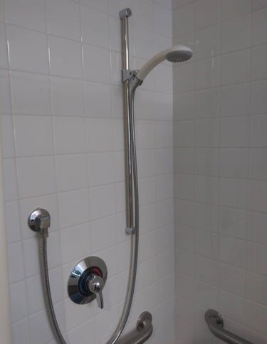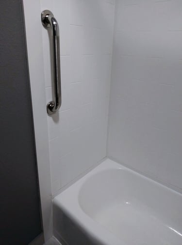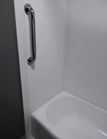 One of the most important modifications to make any shower safer is a grab bar. When mounted correctly, grab bars offer great stability and have been shown to be effective in reducing falls in and around the shower. It is highly recommended to have a professional install the grab bars and to avoid suction cup style grab bars which do not offer the same stability as wall mounted options.